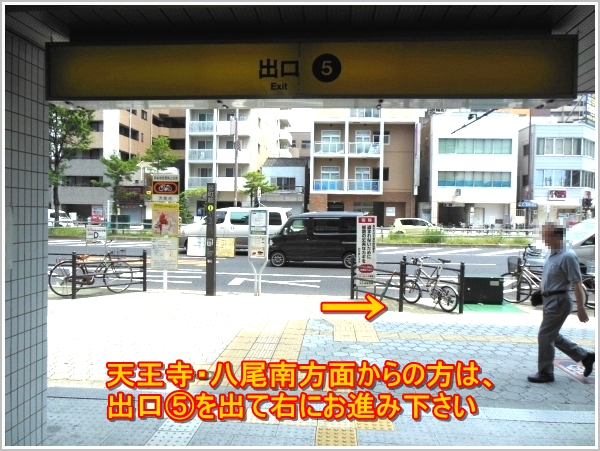 天王寺・八尾南方面からの方は、出口Dを出て右にお進み下さい。
