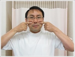 左の写真のように、ほお骨の下の部分を触ってみてください。