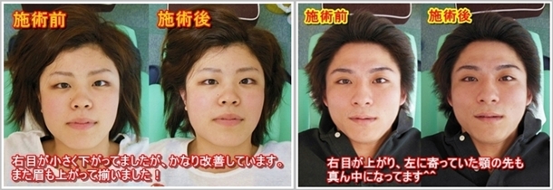 また、女性でお化粧の際に『眉の高さや角度、目の高さや大きさが気になる』という方にも、当院の顔面矯正はとても有効です。