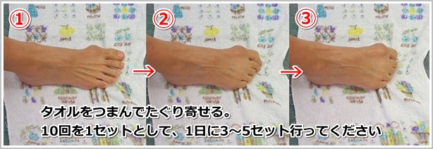 まずタオルなどを床に置き、それを足の指を使ってたぐり寄せます。