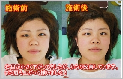 施術前は、右目が小さくやや下がっており、眉も不揃いです。