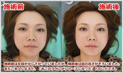 施術後は、眉の位置、目の大きさ・高さ、口角も揃っています。