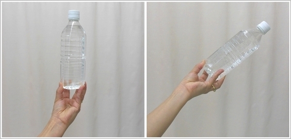 試していただくと分かるのですが、画像のようにペットボトルを持ったとき、左と右では持った感じが全く違います。